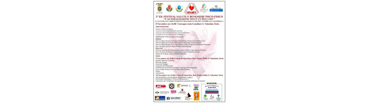 Il Gruppo Fratres Formisano San Valentino Torio (SA) ha organizzato nei giorni 8 - 9 e 10 Novembre 2025 la Seconda edizione del Festival della Salute e Benessere Psico - Fisico cosi strutturata: