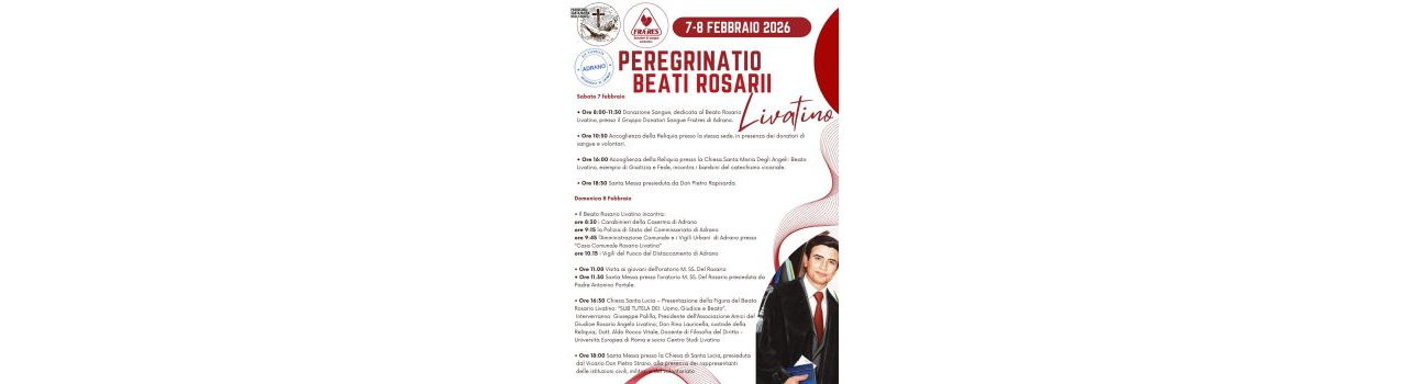 Intensa emozione e momenti di grazia vissuti dalla Parrocchia Santa Maria degli Angeli, dal Gruppo Fratres Donatori di Sangue di Adrano e dalla comunità adranita che, nei giorni 7 e 8 febbraio 2026, hanno abbracciato la reliquia del Beato Rosario Livatino.